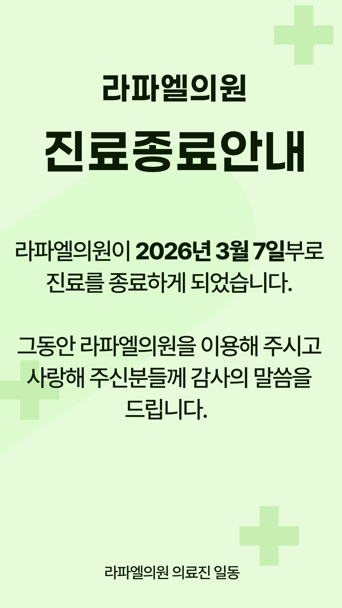 평 일 : 09:30 - 18:30목요일 : 14:00 - 18:30(오전휴진)토요일 : 09:30 - 13:30(점심시간없이)점 심 : 13:00 - 14:00휴 진 : 일요일/공휴일